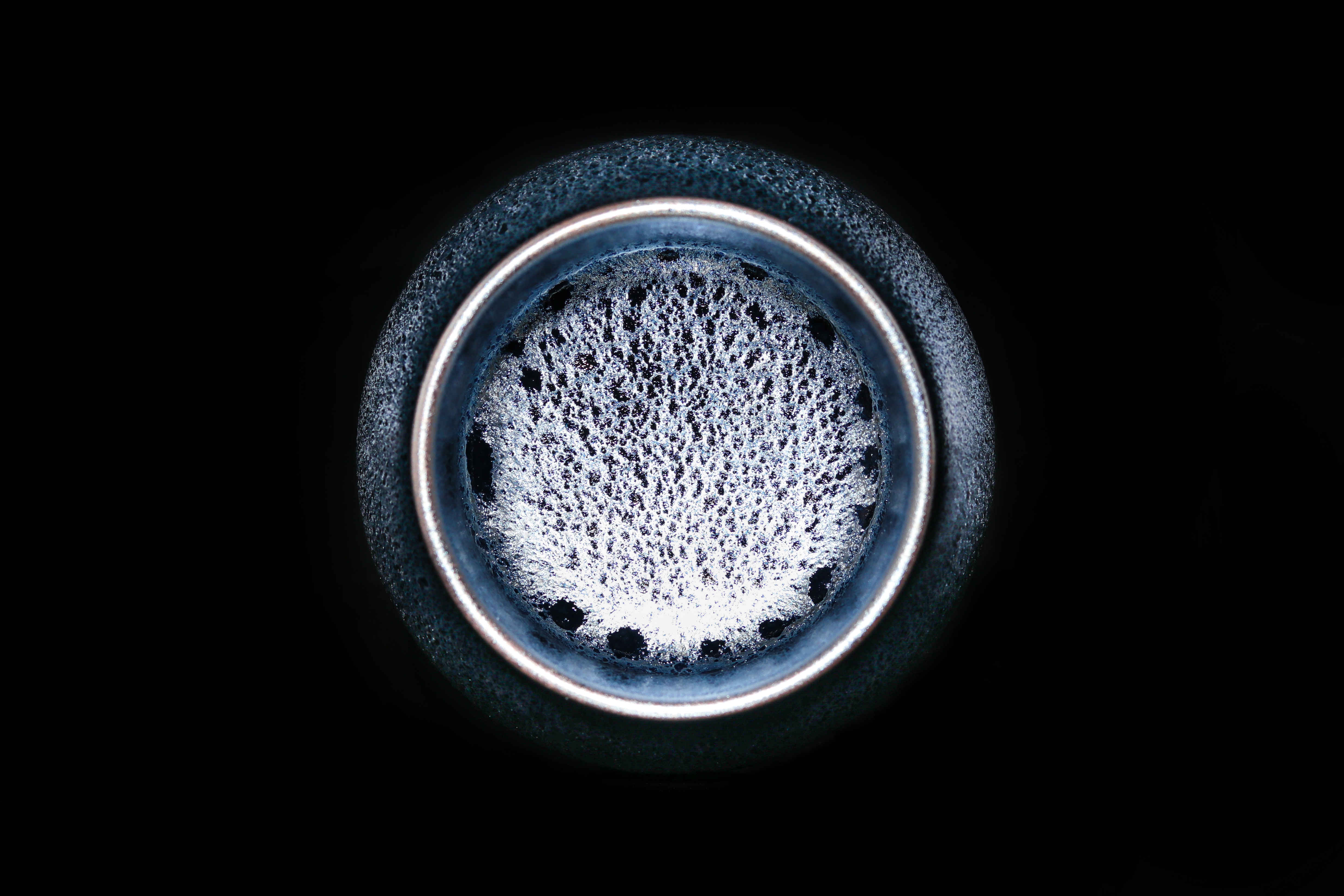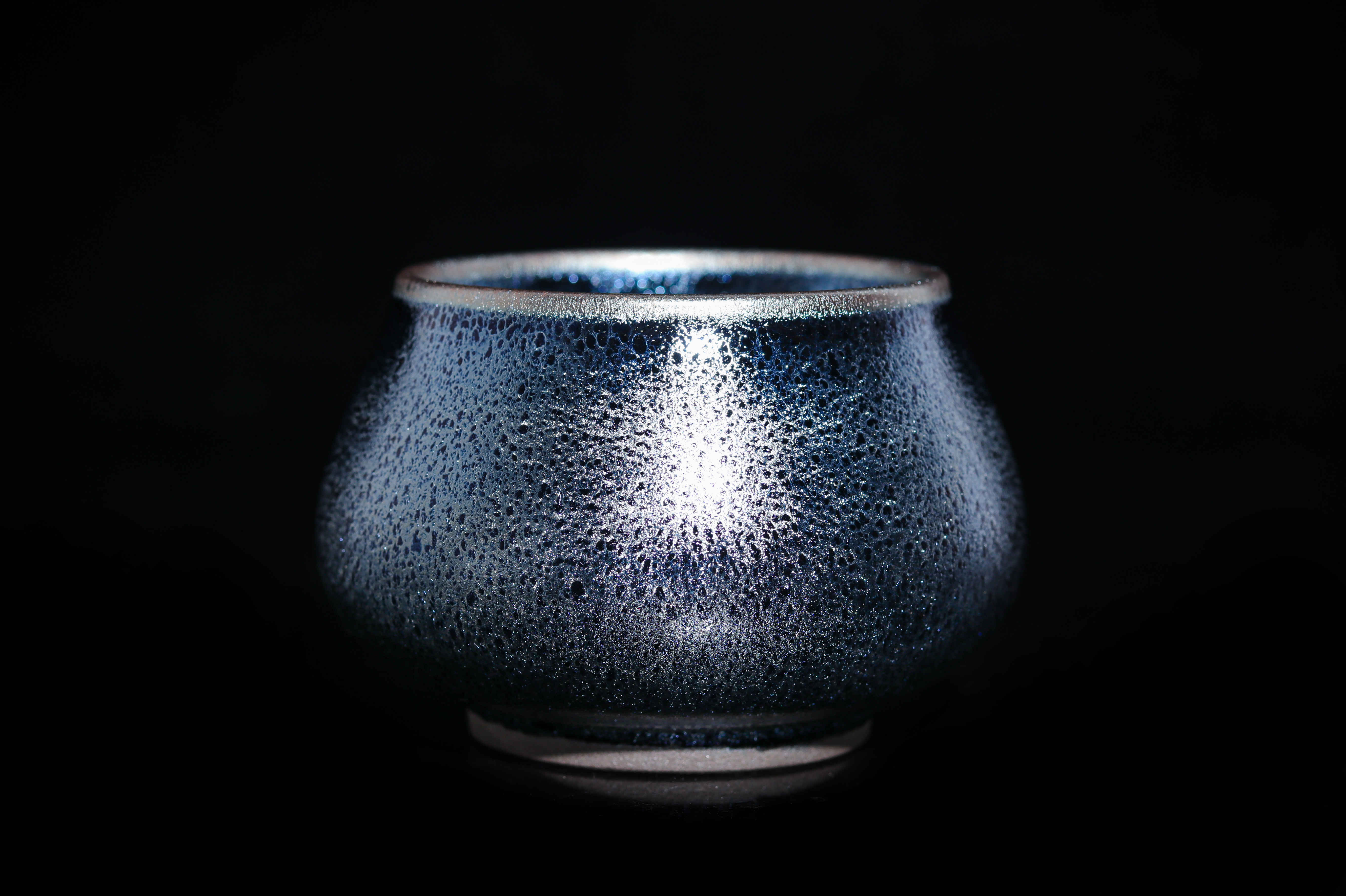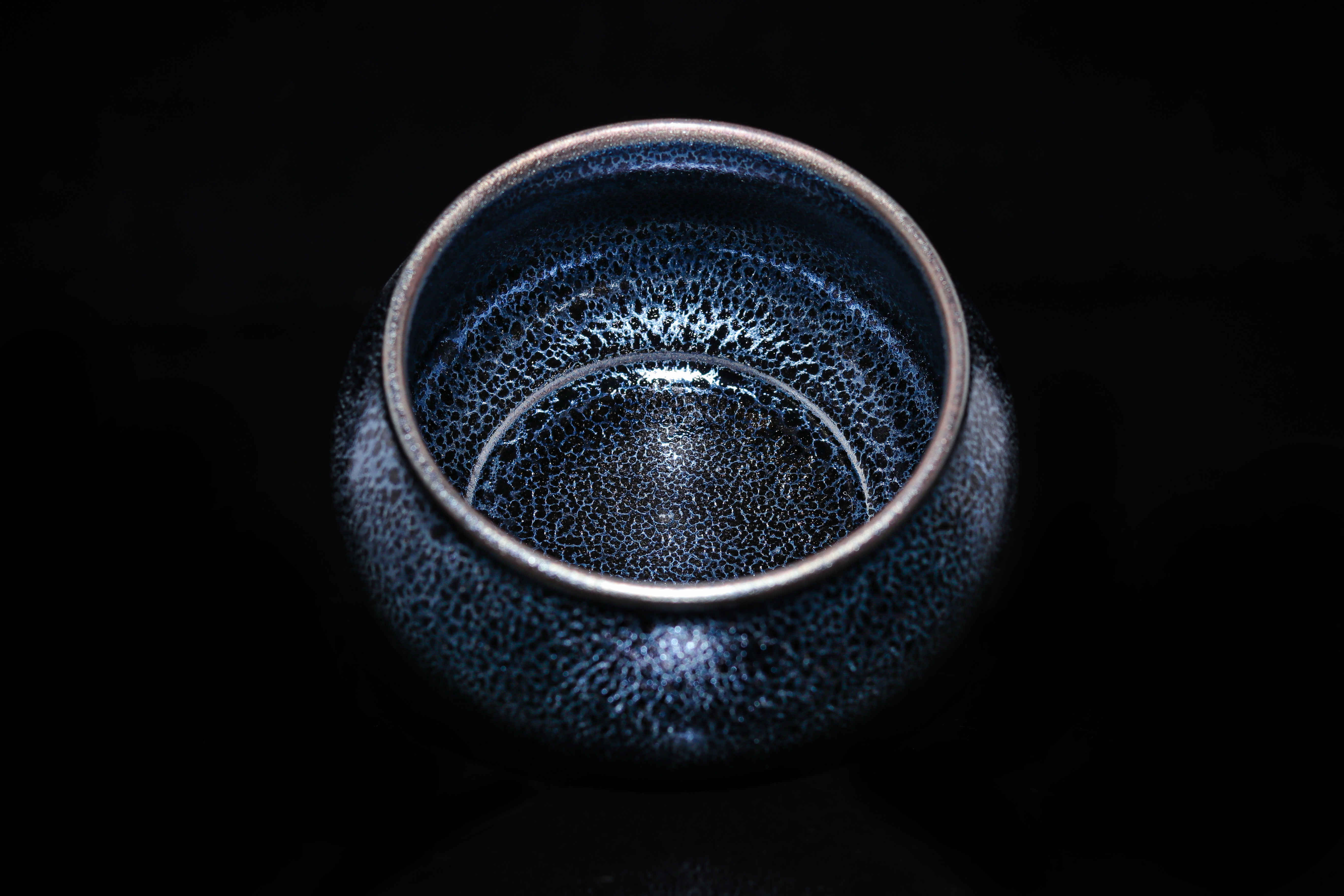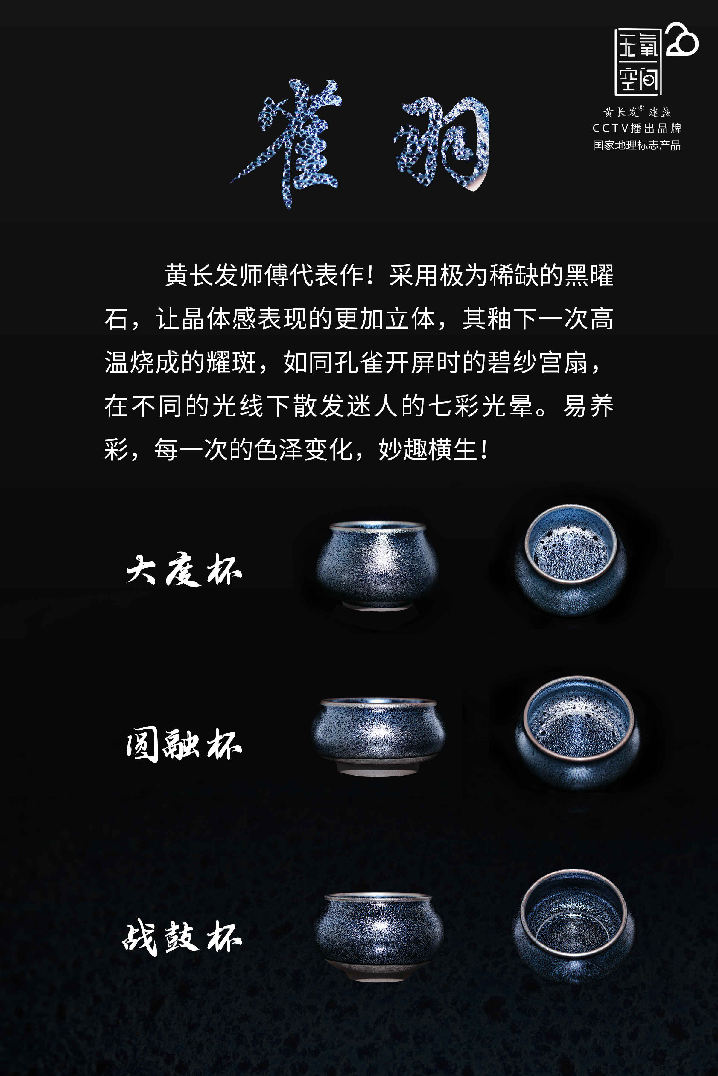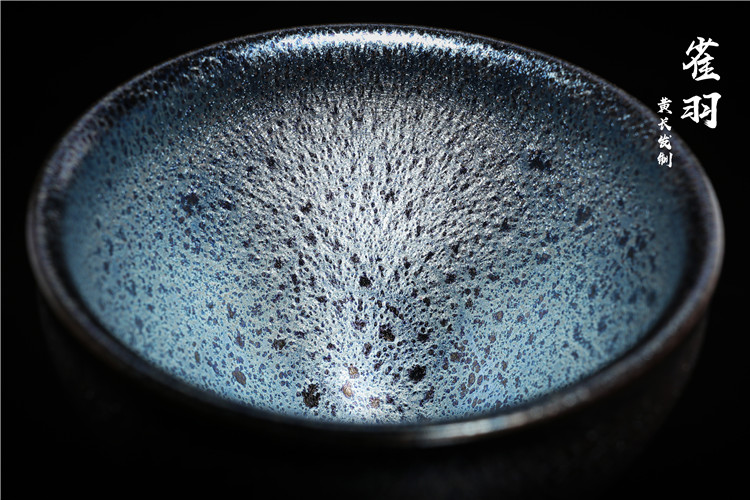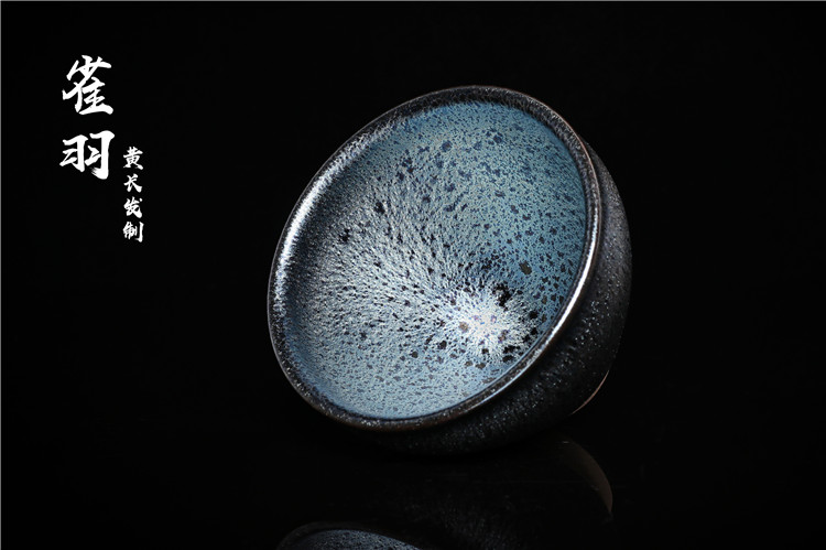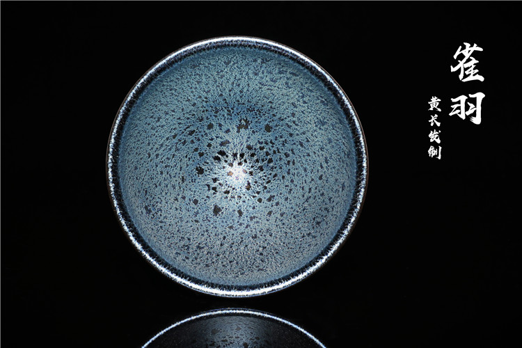 根據宋代老盞瓷片斑紋燒制而成,仿古的同時,采用極為稀缺的軟性礦石,讓晶體感表現的更加立體,其釉下一次高溫燒成的耀斑,如同孔雀開屏時的碧紗宮扇,在不同的光線下散發迷人的七彩光暈。易養彩,每一次的色澤變化,妙趣橫生!